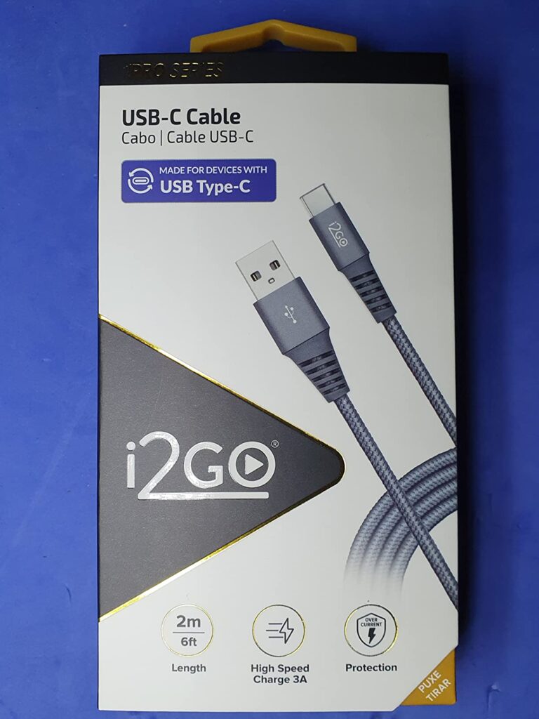 Cabo USB-C I2GO 2m 2,4A Nylon Trançado Chumbo – I2GO PRO