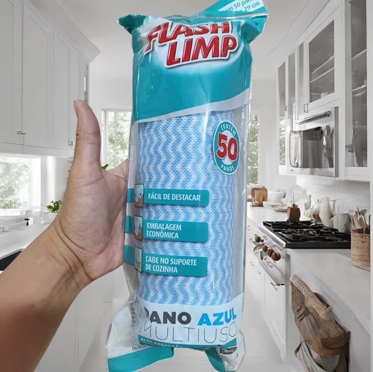 Flash Limp Pano Multiuso Rolo Com 50 Unidades Lavável E Secagem Rápida Azul