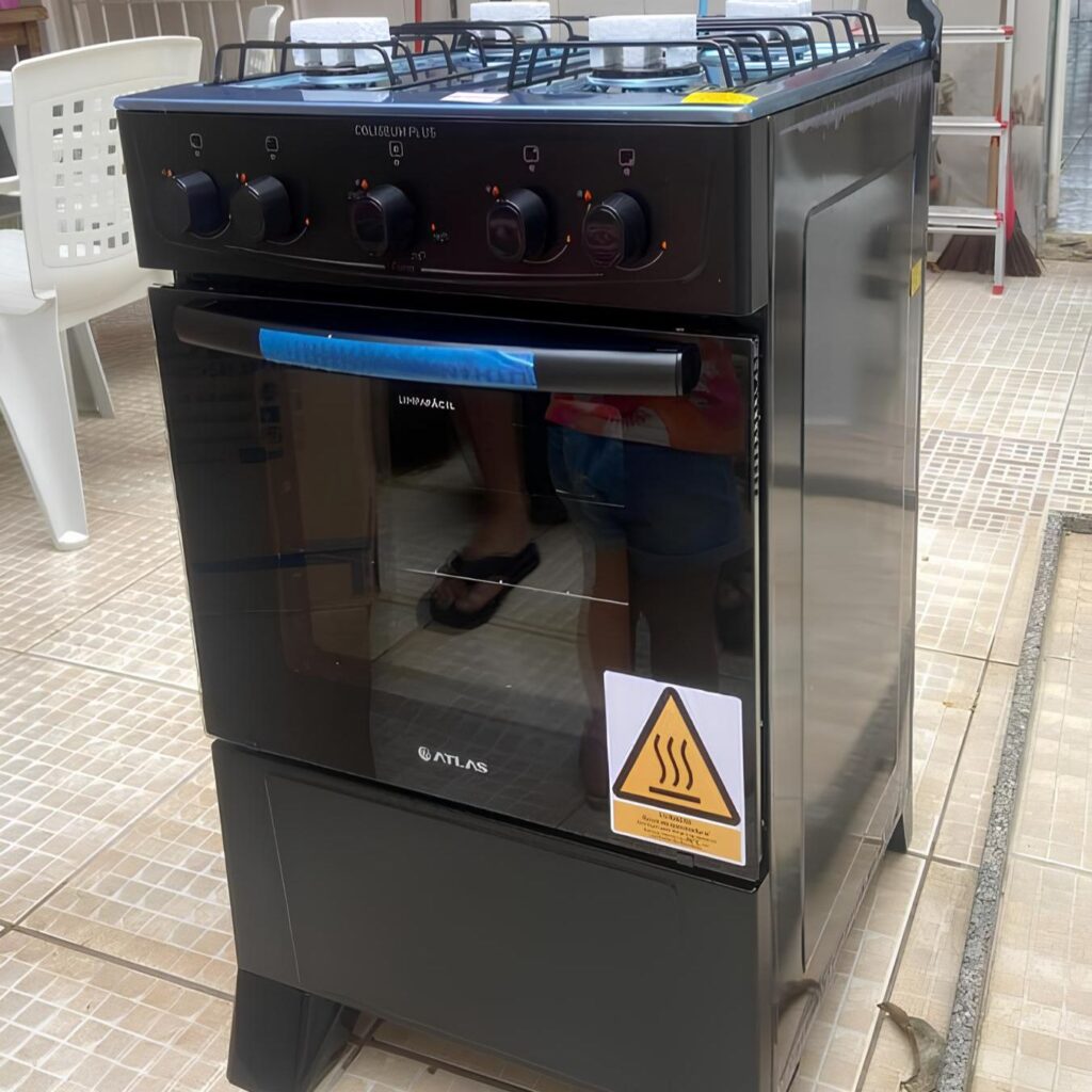Fogão Atlas 4 bocas preto com forno limpa fácil Coliseum Plus – Forno 50l